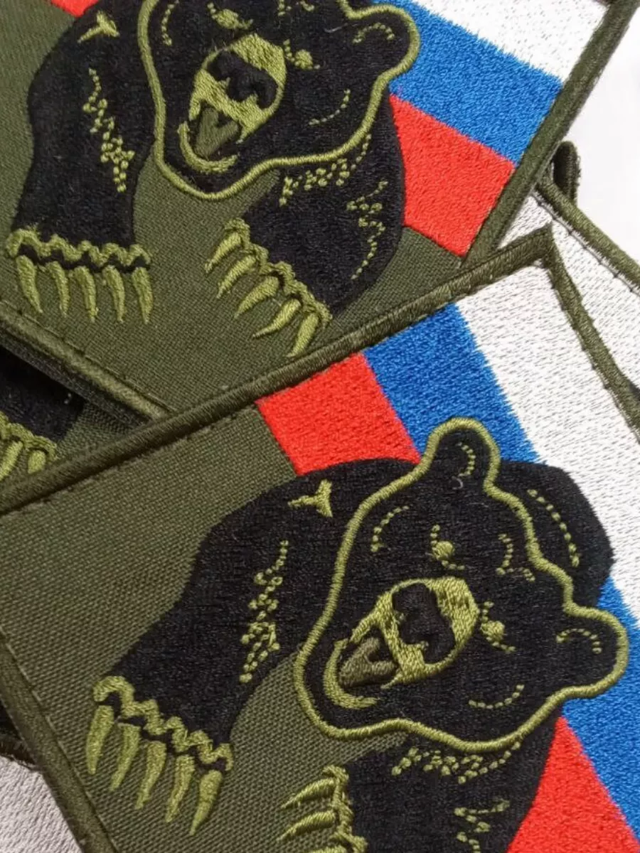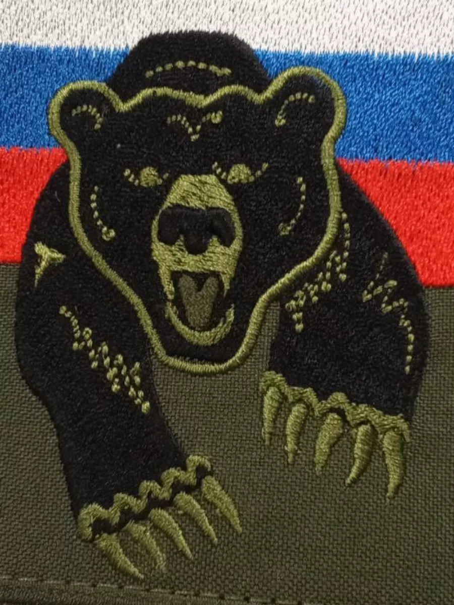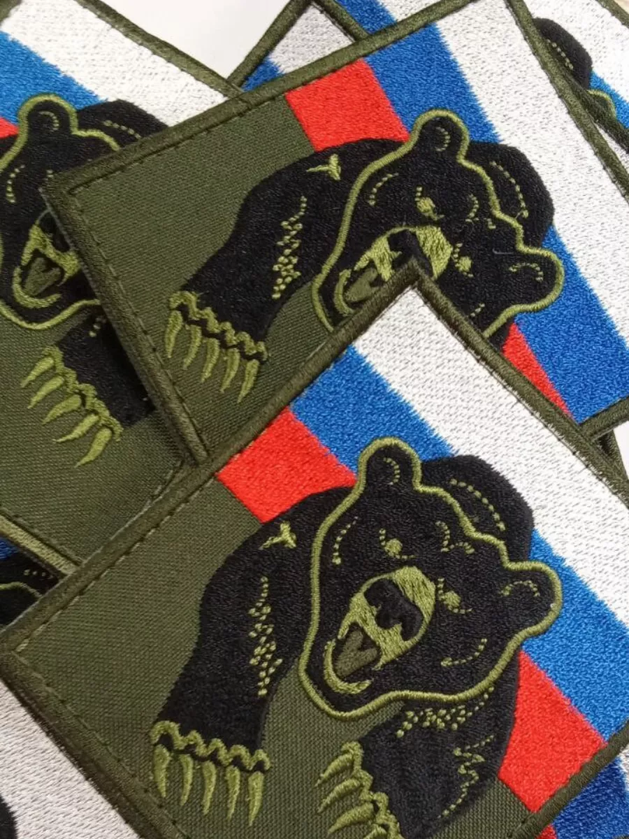 Шеврон вышитый Флаг РФ с медведем на липучке - интернет магазин Полигон