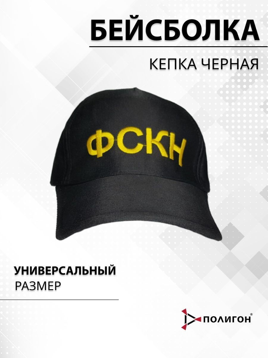 Бейсболка черная с вышивкой для мужчин и для женщин. Головной убор подойдет под повседневный, ежедневный и спортивный стиль. Бейсболка универсальная унисекс, размер регулируется под индивидуальные потребности one size. Сувенирная кепка бейсболка с вышитой надписью над козырьком желтой нитью: ФСКН. Сезон - круглый год. Изделие не линяет. Отличный подарок сотруднику государственной безопасности, на день ФСКН 11 марта. Кепка-бейсболка может быть реквизитом для киносъемки, на свадьбе, на праздновании дня рождения, мальчишника, девичника. Дополните свой образ нашей кепкой.