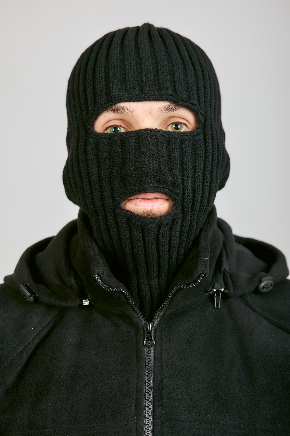 Маска 2 отверстия, черный, пан, шерсть - интернет магазин Полигон