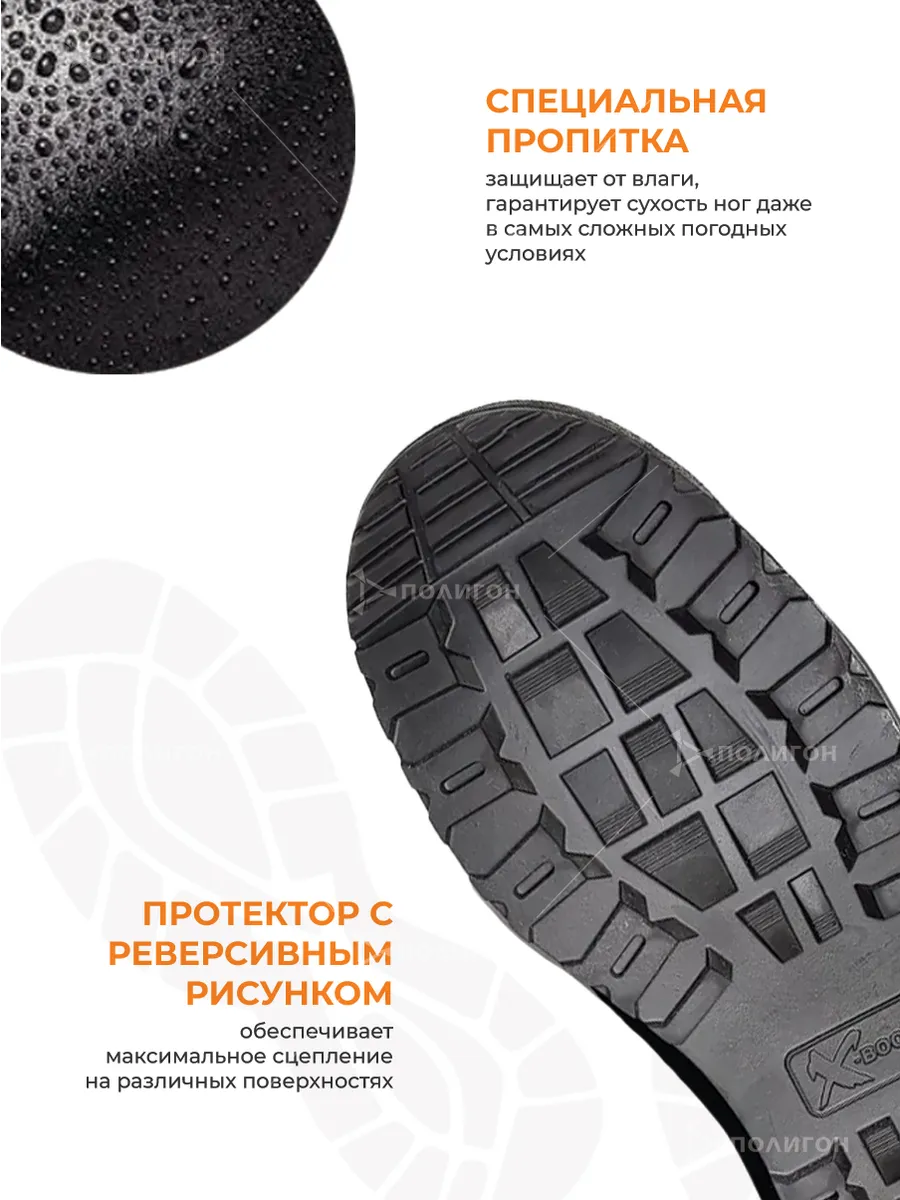 Верх обуви: гидрофобная кожа (1.4–1.6 мм)