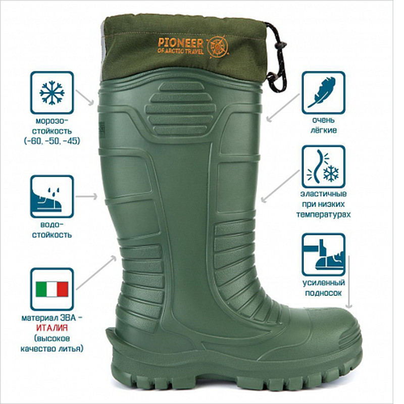 Сапоги PIONEER ЭВА с чулком №2, -60С, зеленый - интернет магазин Полигон