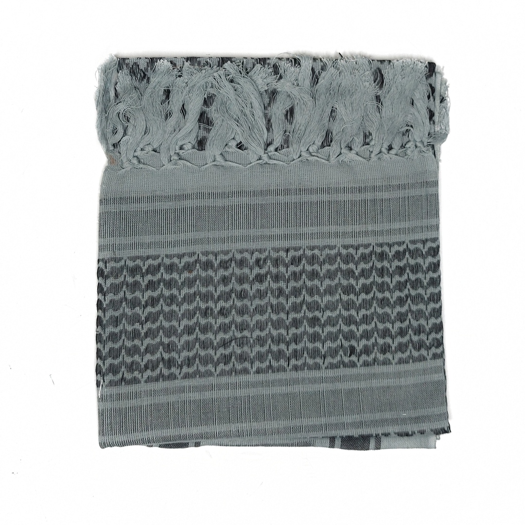 Мужская арафатка это широкий платок, размер 110х110 см. Отличная защита в жарких странах от парящего солнца, песка, песчаных бурь, насекомых, высокой температуры. Платок-арафатка повседневный аксессуар в арабских странах, военных, куфия также стильная деталь мужского образа. Изюминка этого мужского головного убора в искусном переплетении контрастных по цвету нитей. Платок подойдет всем, он универсален, унисекс, для мужчин, женщин, подростков и детей, его очень полюбила молодежь. Восточный мужской шарф легкий, дышащий материал ткань 100% хлопок, цвет серый.