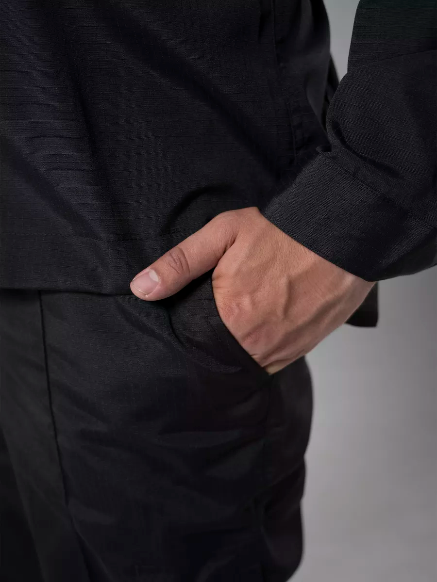 Костюм полиции ППС из ткани рип-стоп был разработан для сотрудников полиции в соответствии с приказом №777. Повседневный костюм сотрудника полиции состоит из куртки и брюк. Куртка имеет застёжку-молнию и ветрозащитный клапан, который крепится на липучках с крестообразными застёжками. На клапане есть липучки для шевронов и нагрудного знака. На спине также есть липучка для шеврона. В области поясницы есть регулировка на кулиске. Воротник куртки – стойка. Брюки прямого классического кроя с простроченными стрелками. Этот костюм предназначен для повседневной форменной одежды сотрудников полиции патрульно-постовой службы.