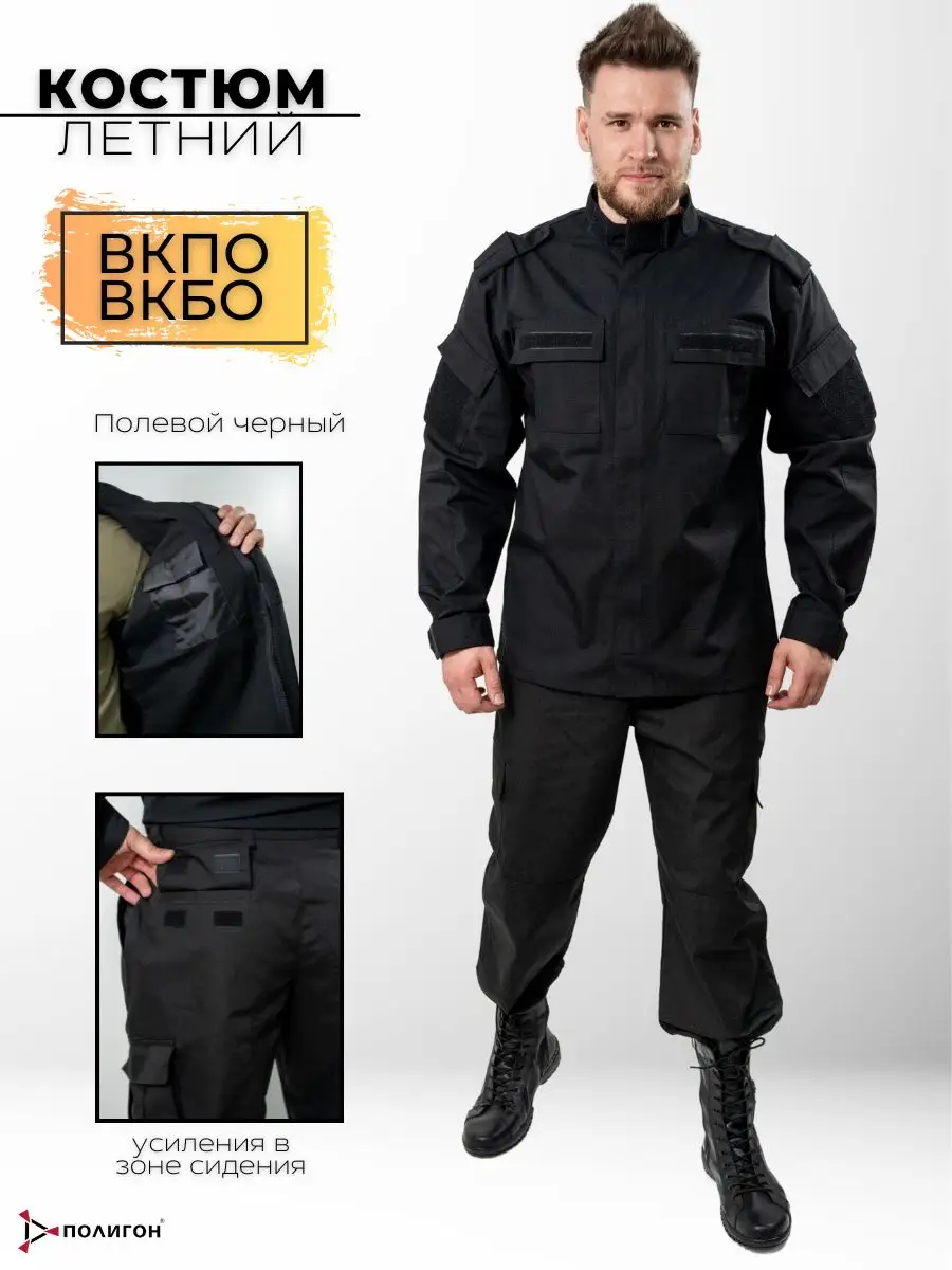 Костюм ВКБО, полевой летний, цвет черный, ткань рип-стоп - интернет магазин Полигон