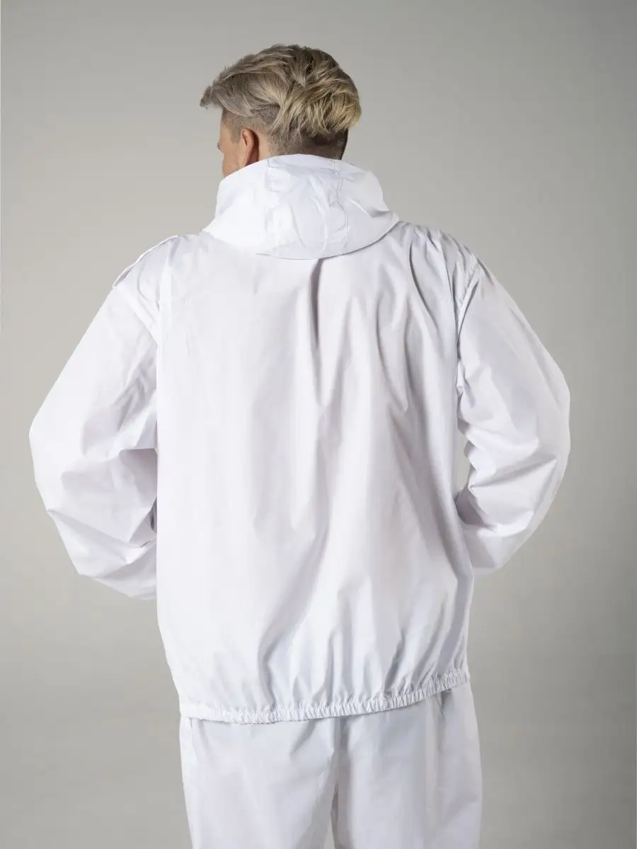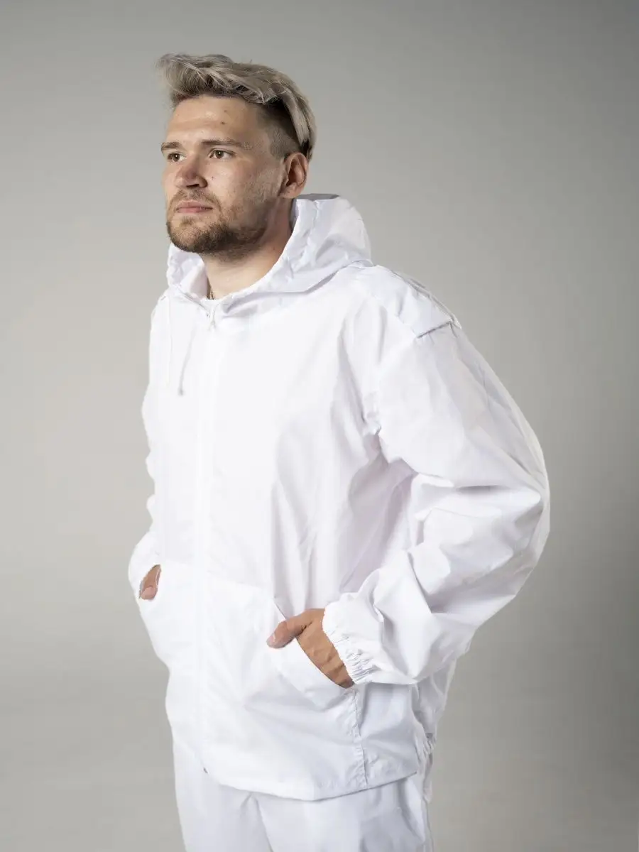 Куртка оснащена накладными карманами, застегивается на молнию, капюшон регулируется тесьмой. На рукавах и поясе утягивающая резинка. Брюки на резинке, на конце брюк также утягивающая резинка. Длинна позволяет заправить брюки в ботинки. Свободный крой костюма не сковывает движений даже при интенсивной нагрузке.