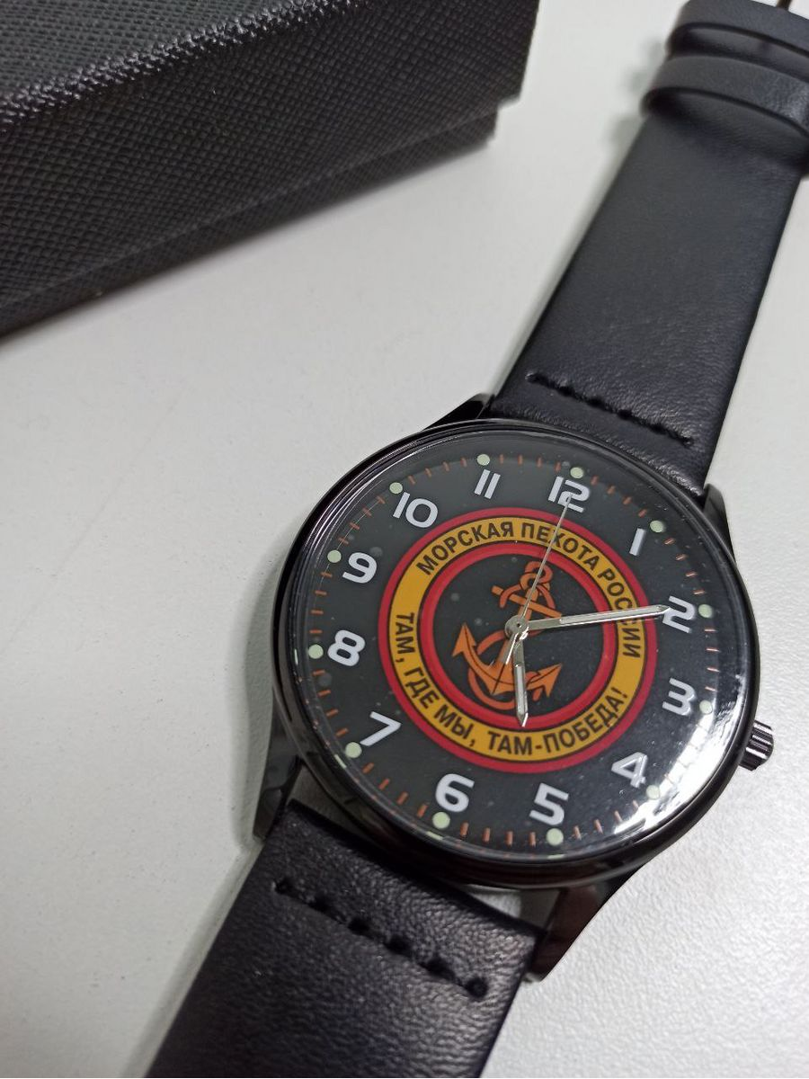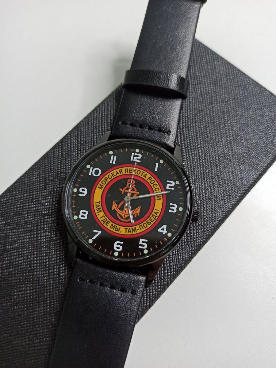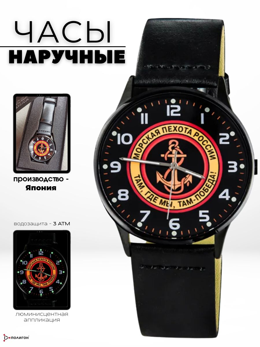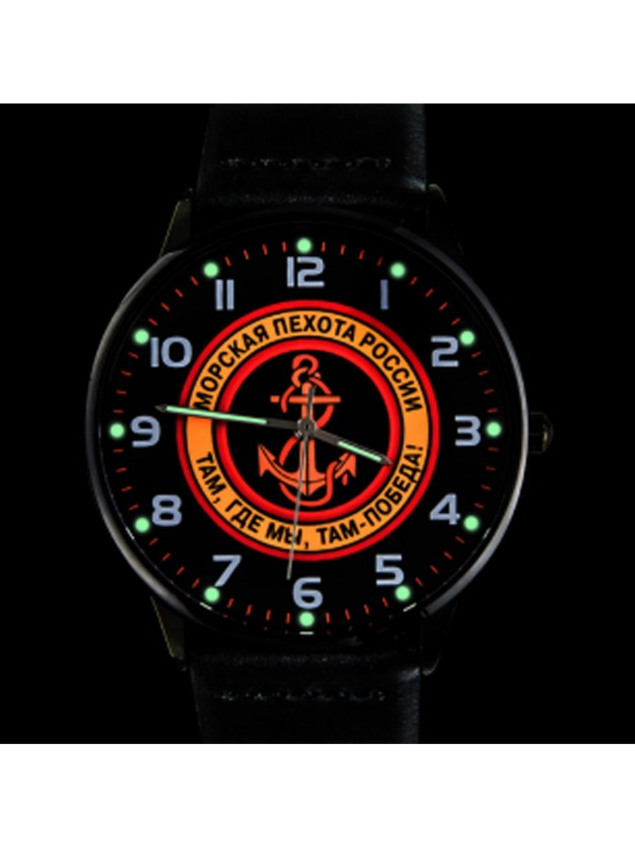 Часы наручные Морская пехота. Циферблат с полноцветным нанесением, люминисцентная аппликация часовых индексов и стрелок. Завинчивающаяся задняя крышка из нержавеющей стали 316L с гравировкой. Страна Япония производитель Seiko TMI. Диаметр 4 см. Корпус металлический, кварцевые. Водозащита 3 ATM. Аналоговые стрелки, формат 12 часов. Материал браслета экокожа, ширина 20 мм, классическая застежка пряжка. Цвет циферблата, тематический принт. Тип механизма - кварцевый механизм Калибр PC21J. Антимагнетизм 1600 А/М. Диапазон рабочих температур: от -5 до +50 С. Элемент питания SR626SW. Срок службы элемента 3 года. Стекло минеральное.