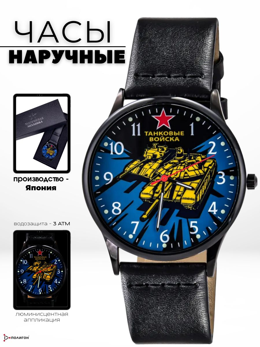 Часы наручные Танковые войска, синий, желтый, черный - интернет магазин Полигон
