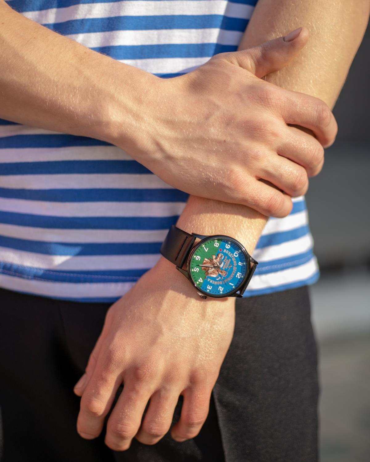 Циферблат с полноцветным нанесением, люминисцентная аппликация часовых индексов и стрелок. Завинчивающаяся задняя крышка из нержавеющей стали 316L с гравировкой. Страна Япония производитель Seiko TMI. Диаметр 4 см. Корпус металлический, кварцевые. Водозащита 3 ATM. Аналоговые стрелки, формат 12 часов. Материал браслета экокожа, ширина 20 мм, классическая застежка пряжка. Цвет циферблата, тематический принт. Тип механизма - кварцевый механизм Калибр PC21J. Антимагнетизм 1600 А/М. Диапазон рабочих температур: от -5 до +50 С. Элемент питания SR626SW. Срок службы элемента 3 года. Стекло минеральное.